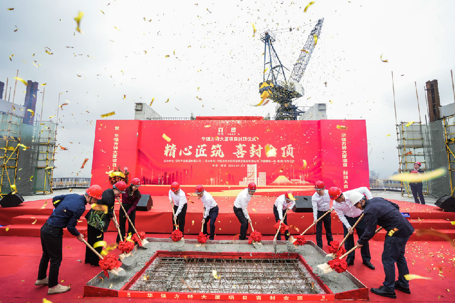 4月8日上午,華強方特大廈封頂儀式隆重舉行。華強集團、華強方特集團領(lǐng)導及總包、監理單位有關(guān)負責人出席了封頂儀式。
