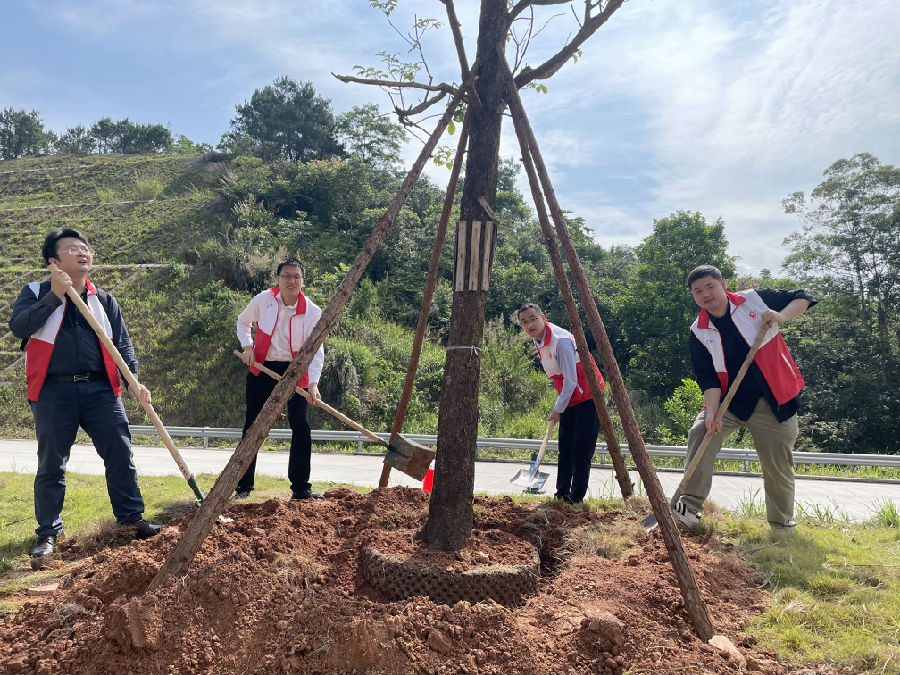 啟動(dòng)儀式結束后,參會(huì )人員來(lái)到義務(wù)植樹(shù)造林活動(dòng)現場(chǎng),與當地鄉賢、黨員、志愿者一起鍬鏟土、填坑夯苗、提水澆灌,合力栽下572棵樹(shù)苗。